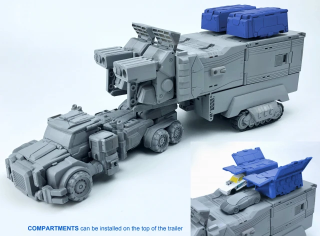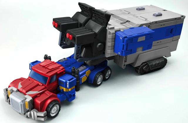 MB-15 Naval Commander figure is part of Fans Hobby’s Master Builder series – in which all figures are Masterpiece-scaled, and this figure stands at about 12.6 inches tall in robot mode. MB-15 Naval Commander’s alternate mode is a Semi-Truck and Trailer with a full arsenal of weapons and accessories.