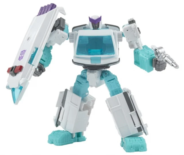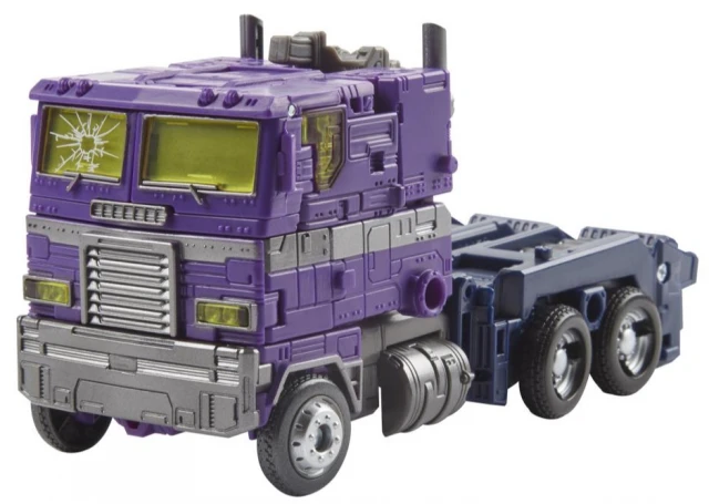 These special edition WFC-GS17 Shattered Glass Ratchet and Optimus Prime figures are inspired by the Shattered Glass comics created in partnership with IDW which depict an alternate universe where the heroic Decepticons battle the evil Autobots. These figures depict the Autobot leader and the Autobot medic with comic-inspired deco that features purple Autobot logos. The Shattered Glass Optimus Prime figure converts to truck mode in 31 steps. The Shattered Glass Ratchet figure converts to ambulance mode in 22 steps. Each figure comes with their signature blaster and the pack features an evil Matrix of Leadership accessory.