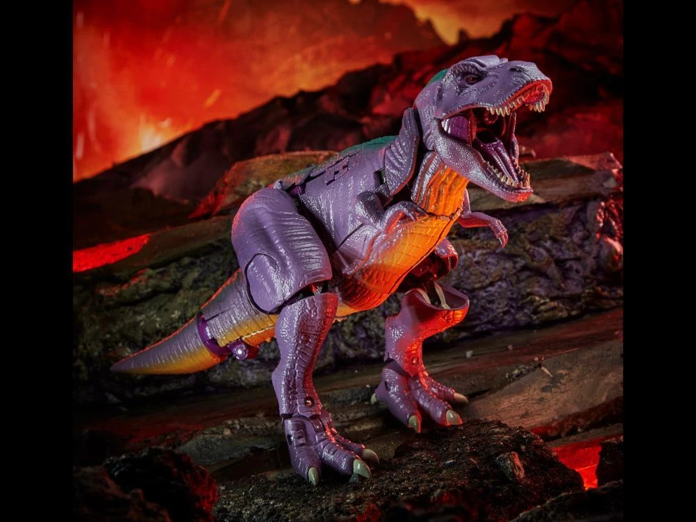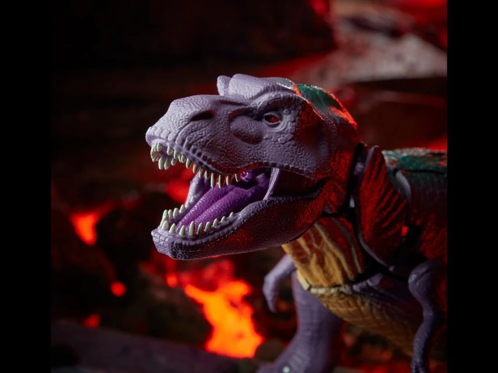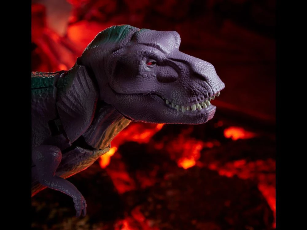 Beastify the battlefield! Worlds collide when the Maximals and Predacons join the fight, coming together with the Autobots and Decepticons in an epic battle that will alter their destiny forever. Primal power floods the battlefield as the fierce beast modes of the Maximals and Predacons are unleashed! Unleash the primal power of the beasts with this Megatron (Beast) collectible figure, featuring a detailed beast mode with intricate dinosaur-inspired molded scales and articulated jaw with molded teeth. Megatron toy converts into a Beast Wars-inspired T. rex mode in 27 steps. Figure’s dino head and tail become his classic claw hands. Add laser fire effect by placing Fire Blasts accessories inside dino head (sold separately with other figures, subject to availability).