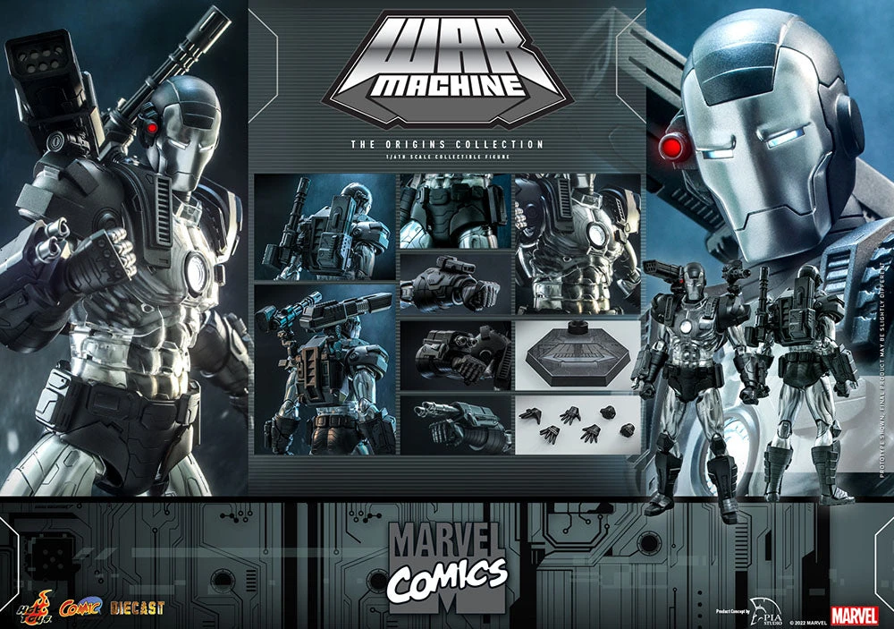 Returning to the original paint scheme inspired by the comic pages, Sideshow and Hot Toys are excited to bring War Machine as the new sixth-scale diecast Marvel collectible figure with crystal armor to extend on The Origins Collection.