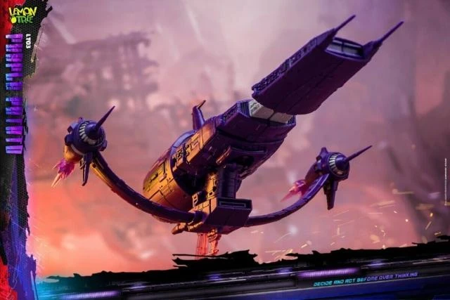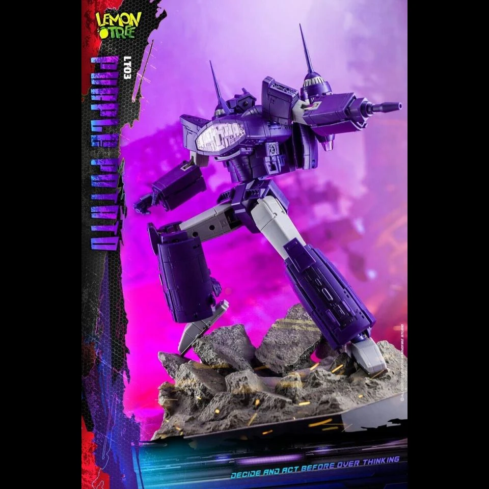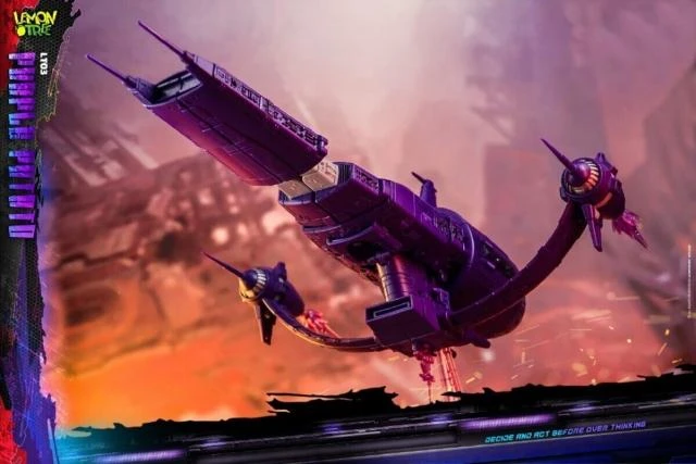 The new third party company Lemon Tree proudly presents the LT-03 Purple Potato! Lemon Tree shows off their interpretation of Shockwave that features his classic robot form with an alt-mode that’s an homage to the Revenge, Galvatron’s Spaceship in Transformers The Movie (1986).