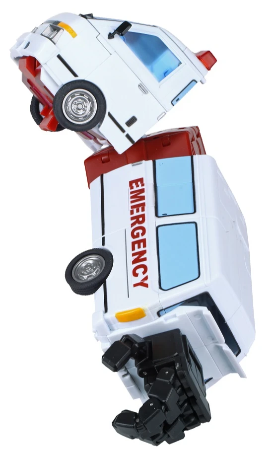 Medicus can convert modes between Bot to the ambulance to the left arm of Maximus Pro using his own components to form the fully functional elbow bend, wrist rotation, wrist bend and articulated combiner hand. He stands at 7.5″ in Bot mode with excellent poseability that matches the entire Perfection Series line.