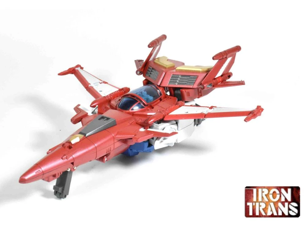 Irontrans IR-V01 Star Blade stands approx 35 cm tall. This figure is made of plastic and die-cast parts. Converts from futuristic jet to robot and back. Comes with weapons and accessories.