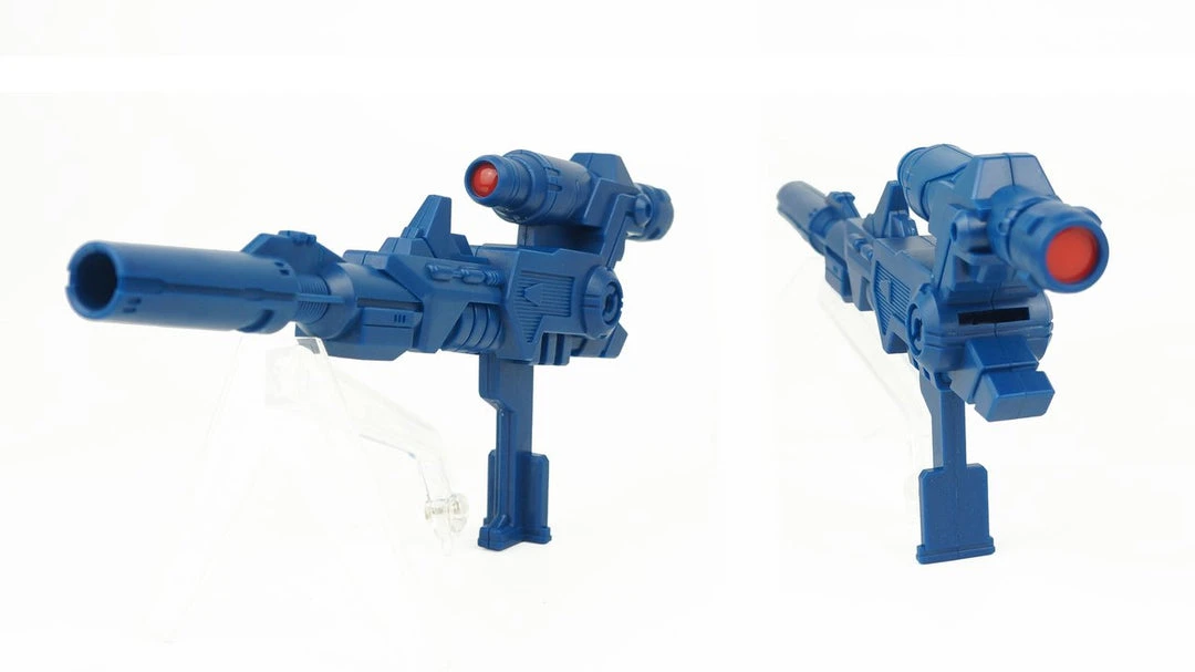 Professor Heisenberg’s SS01 Solution Set (Master Cleaver and Master Cannon) Forged from the hardest substance in space, master cleaver is the choice of weapon of the largest titans. This is the ultimate accessory for your collection. This newly designed sword is made of quality translucent plastic and measures approx. 46cm long. The sword can split into three different forms and sizes to fit smaller robots. Created from the same substance as the the Master Cleaver, the Master Cannon is the perfect companion to legendary sword. Legend has it that only the greatest of titans can unlock the full power of the cannon. This amazing accessory is made of quality plastic and measures approx. 23cm long. This weapon comes with a switch which allows for the cannon to be mounted to the back when not in use and also a fold in handle for attachment in base mode.