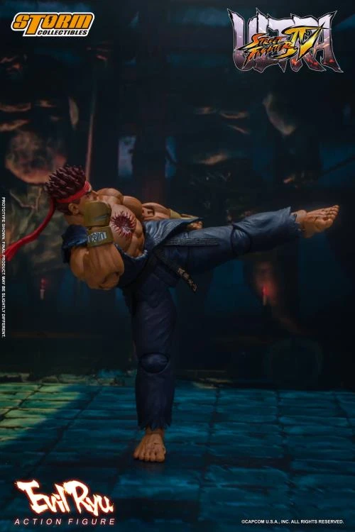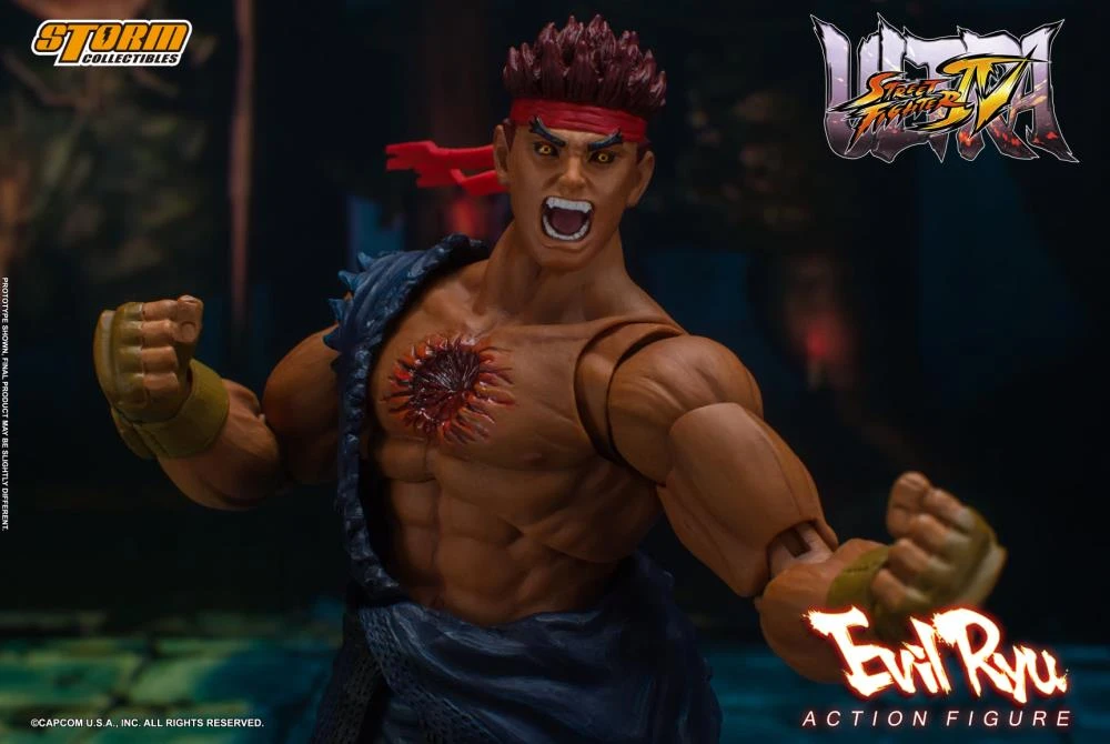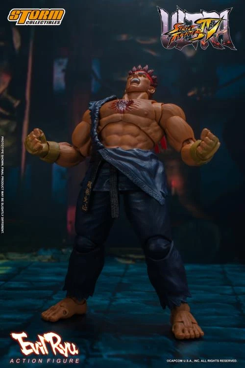 Evil Ryu enjoys absolute power and obsesses with fighting and will defeat any fighters standing in front of him with no empathy or respect. In Street Fighter IV he takes on a much more menacing and powerful appearance, with a gaping hole burned into his chest and his back that bears a glowing “Heaven”(天) Kanji.