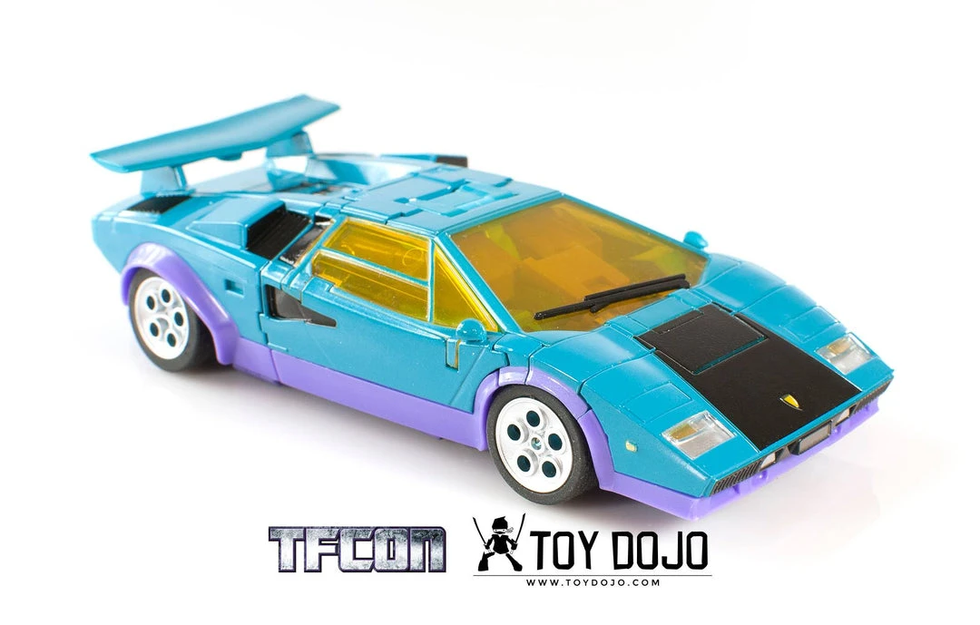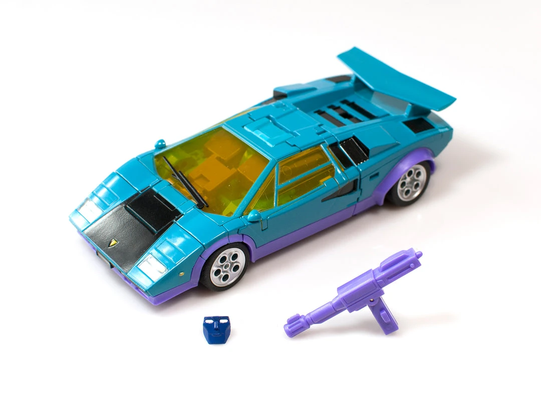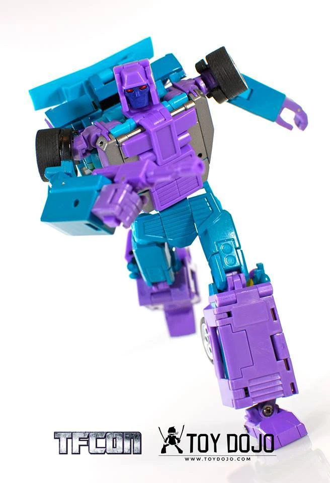 Exclusive G2 recolor of MX-13 Crackup! The figure measures approx 16 cm / 6 inches tall. The figure transforms from a sports car to robot and back. The figure is made of die-cast metal and plastic. Special collectible box with G2 themed design. Features : Weapon Instruction manual Bio Card Rubber tires Clear car window Ratcheted joints