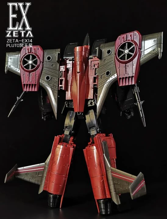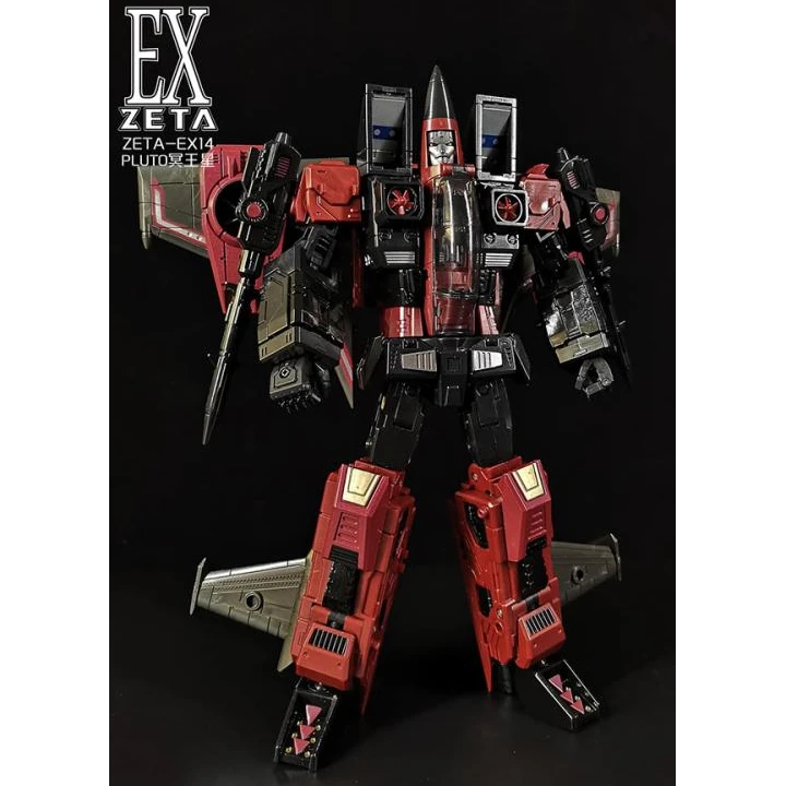 The Zeta EX14 Pluto is a limited edition masterpiece Scale scaled figure that converts from a fighter jet to robot and back. Pluto stands approx 8.5 inches tall in robot mode. Comes with weapons and accessories.Â